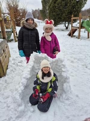 V úterý jsme s dětmi vyrazili na zahradu mateřské školy, kde na nás čekala soutěž. Ve skupinách jsme stavěli sněhové sochy, které jsme následně ozdobili pomocí barevné směsi vody a barev. Děti si společnou aktivitu velmi užily a zapojily se s velkým nadšením.
