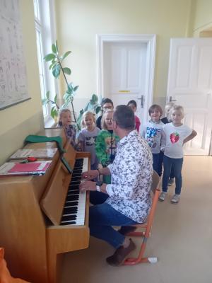 Dnes se žáci učili první slovíčka anglického jazyka, a to přímo při doprovodu kytary a zpěvu paní zástupkyně. Všichni si to pěkně užili. Už nyní se všichni těší na další hodinu angličtiny..."How are you"?.