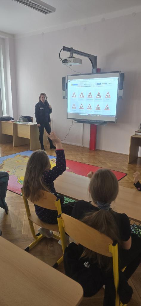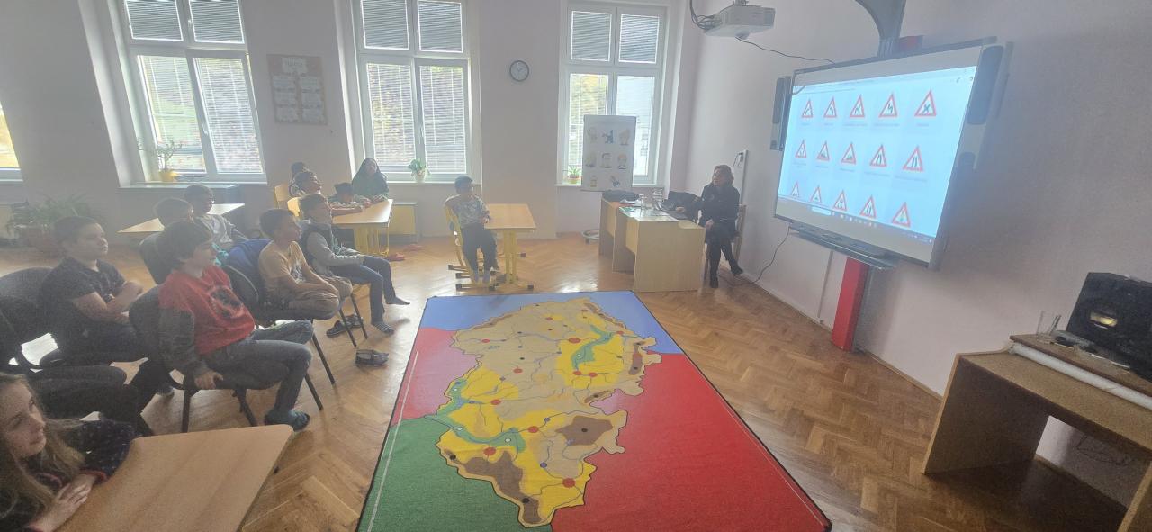 Dnes jsme se dozvěděli, co vše je potřeba umět a jak se chovat v rámci provozu na pozemních komunikacích. Bylo to moc fajn a na závěr jsme dostali reflexní pásky - děkujeme!