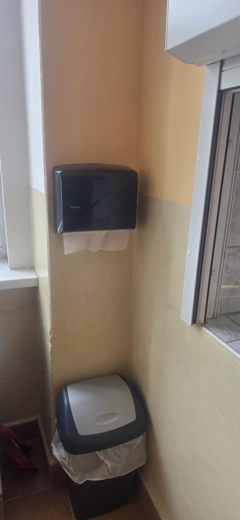 ...a mimochodem už i ve školní jídelně máme zásobníky na papírové ručníky, které tímto po celé škole nahradily staré a nehygienické ručníky látkové.