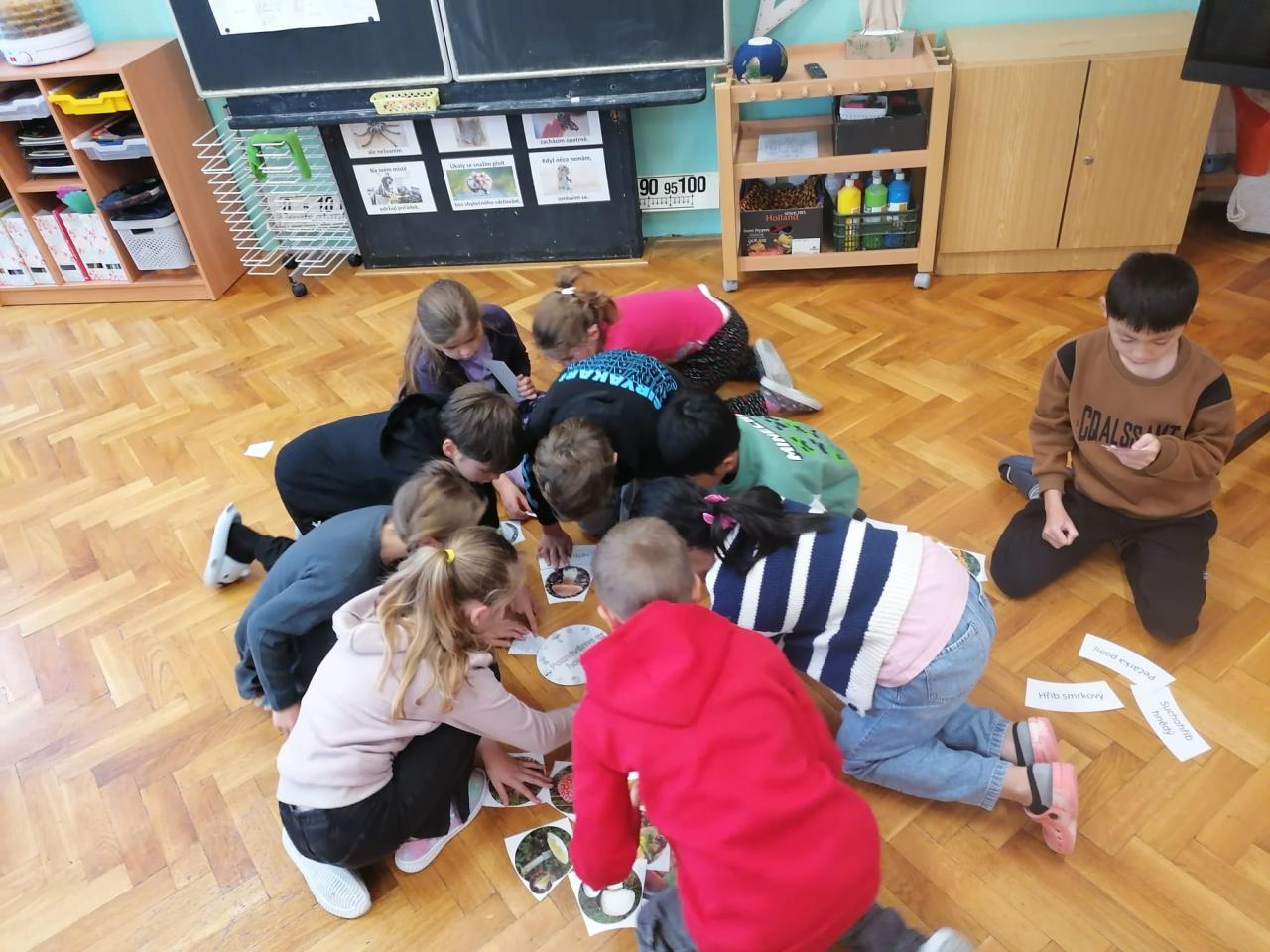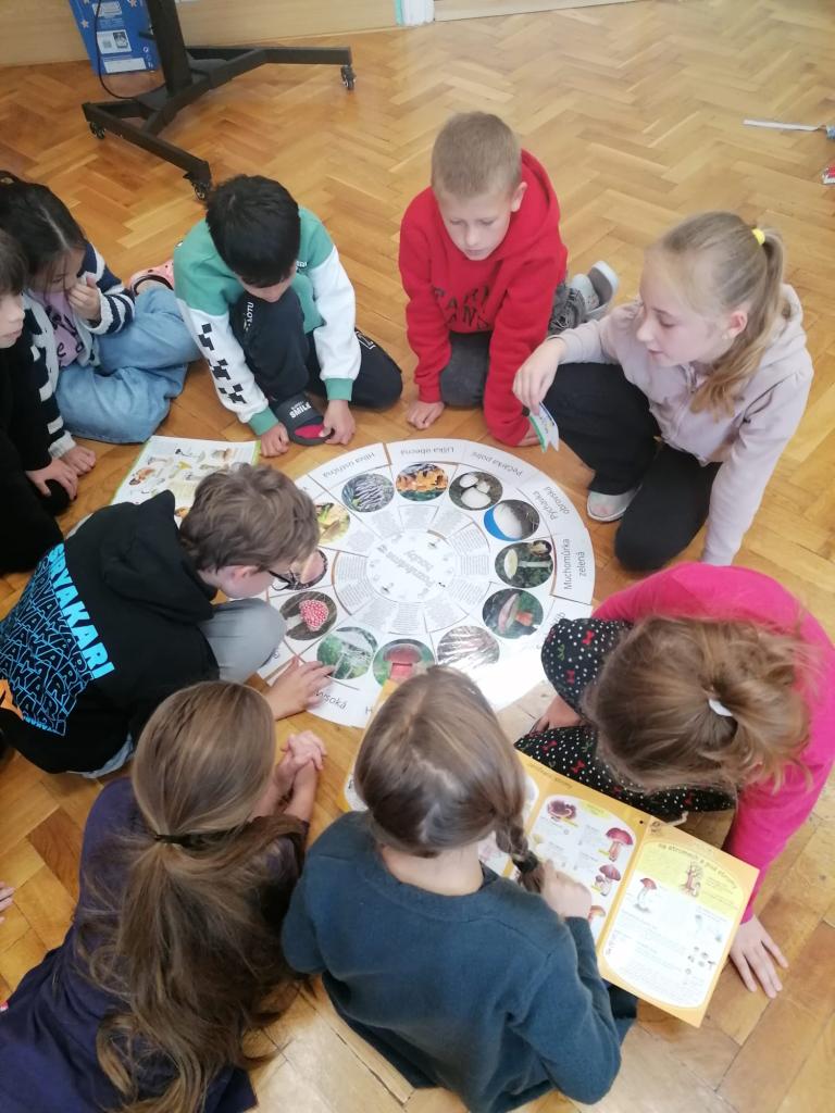 Dnes jsme ve 4.třídě dali hlavy dohromady a vyřešili jsme společně nejprve záludný mykologický úkol a potom jsme napříč předměty bádali, jak vytvořit velkou kružnici pod houbovou mozaiku. Přišli jsme na to! Jsme tým!