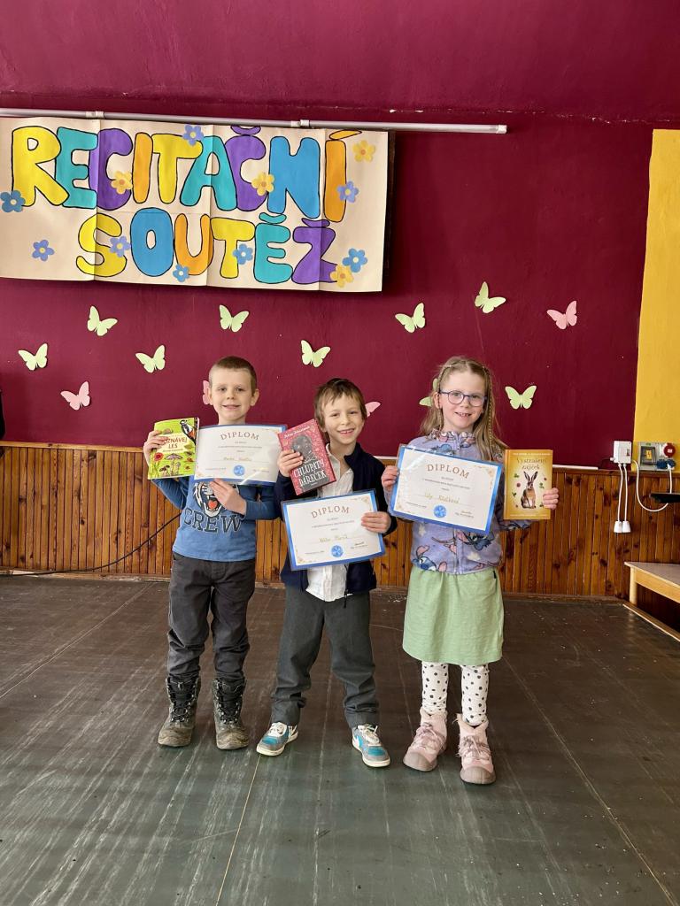 Všem recitátorům děkujeme za poctivou přípravu a odvahu vystoupit před publikem. Velké poděkování patří také členům poroty za pečlivé hodnocení a čas, který soutěži věnovali, a všem zúčastněným školám za spolupráci a podporu svých žáků. Vítězům gratulujeme k úspěchu a těšíme se na další ročník soutěže.