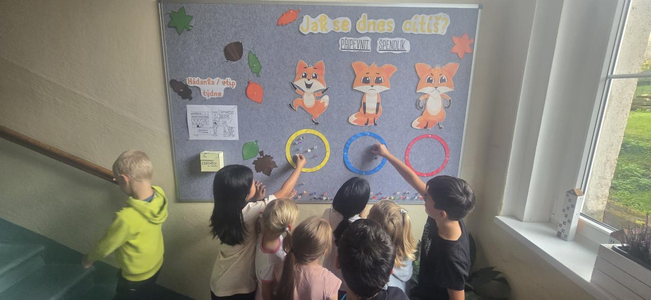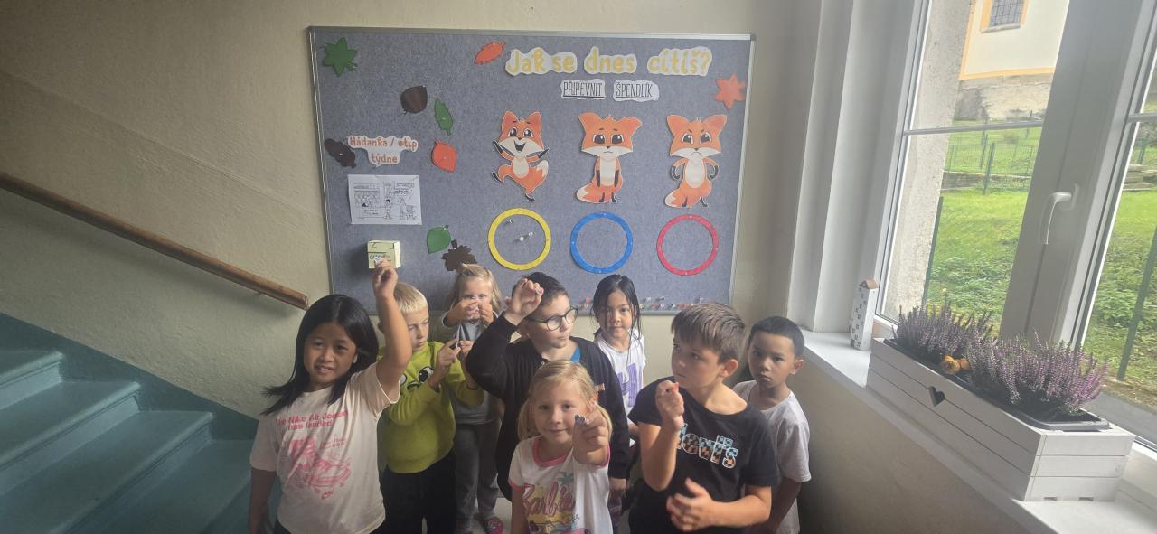 Každý z nás si vyrobil malý špendlík ve tvaru srdíčka a každé ráno ho můžeme umístit k příslušnému pocitu...a klidně i během dne ho přesouvat. Dnes jsme si to cvičně zkusili a od pondělí začínáme. Těšíme se na to!