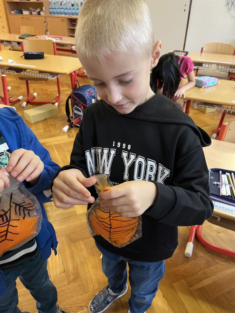 Předposlední říjnový týden jsme s žáky 1. ročníku vyráběli na hodině pracovních činností listy z laminovací fólie. Žáky činnost velmi bavila a nakonec si s vodními listy hráli celý den.